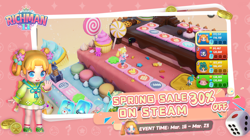 We bring a sale for everyone to celebrate this traditional festival!, Richman 11 now has 30% off discount. Play with your friends, you can select maps, characters and group play, creating free play or challenge play. Try to earn money and win the play by investing properties!