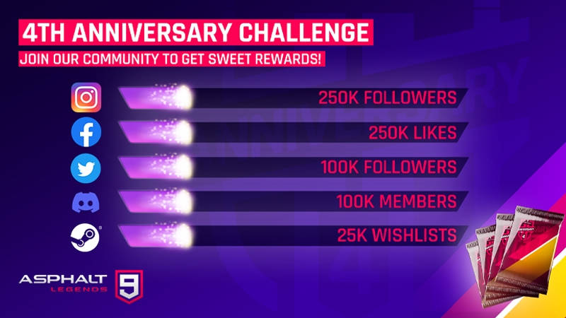 We are celebrating the 4th anniversary of Asphalt 9: Legends with a community challenge!