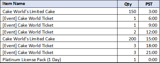 Player Character must be logged in during the giveaway period to receive the bonus items.
