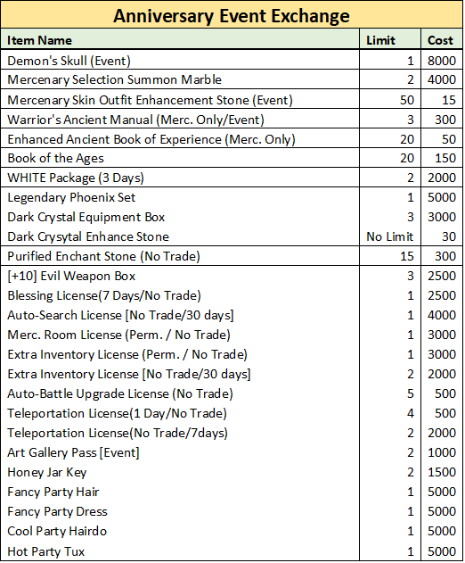 To start off the anniversary, we are inviting everyone to the reopening of Cake Land! Brilliant Acong has a lot of good stuff on offer on its Event Anniversary Exchange Shop.