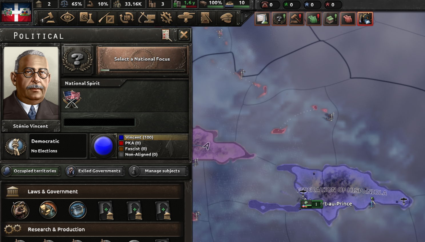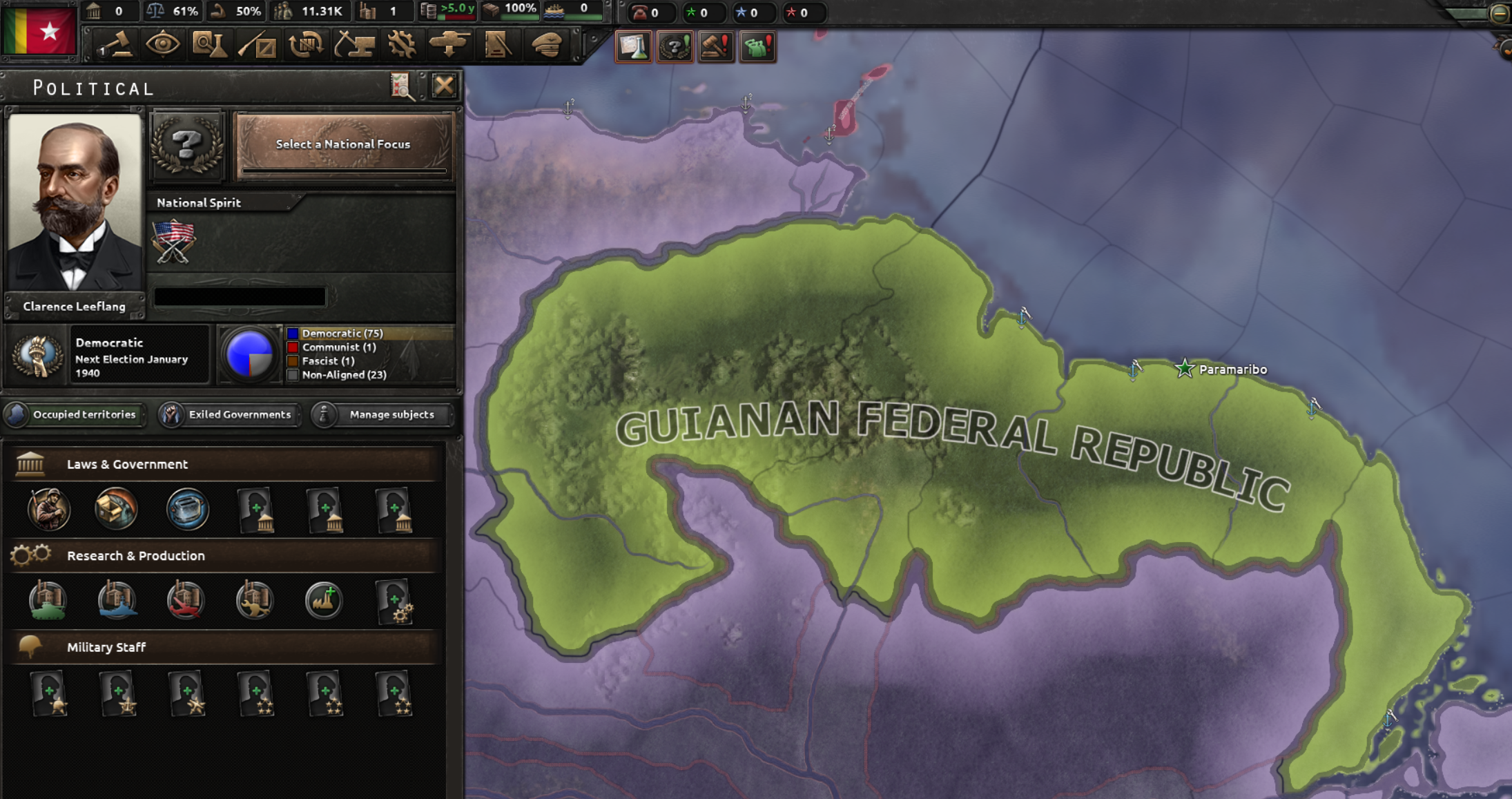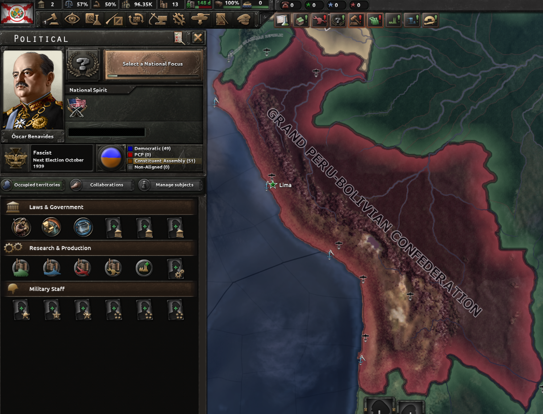 If Democracy isn’t to your liking you can instead go down to the Furhmann plan, ally with agitators like Adolfo Agorio become fascist and use it as a springboard for the Axis powers in South America. This path is now locked behind any election event and can be b-lined to at game start if so pleased.