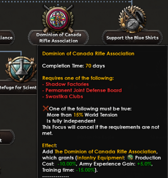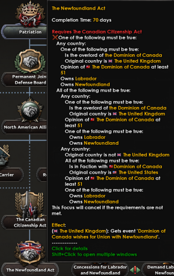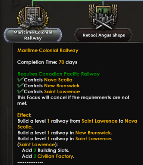And then this focus allows you to gain Newfoundland and Labrador despite staying with the Allies, or even when going independent democracy.