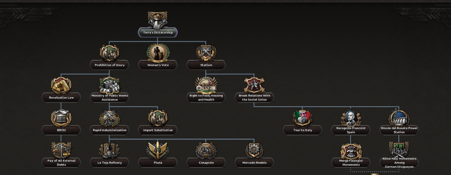 here to present two mini-trees, Paraguay and Uruguay. These trees started as a side-project for me after the release of AAT, mostly to give a small treat to you guys but kinda kept growing in size as time went on from a smaller shared tree into fully separated trees with a scope target like Aussa or Iceland. (Note that much of the icons are placeholders and will get updated)Paraguay