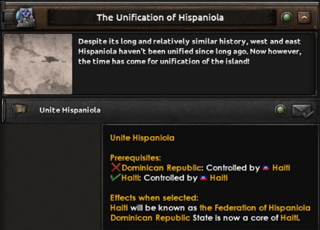And finally for new free formable nations coming in this patch, we have Hispaniola, formable by either Haiti or the Dominican Republic.