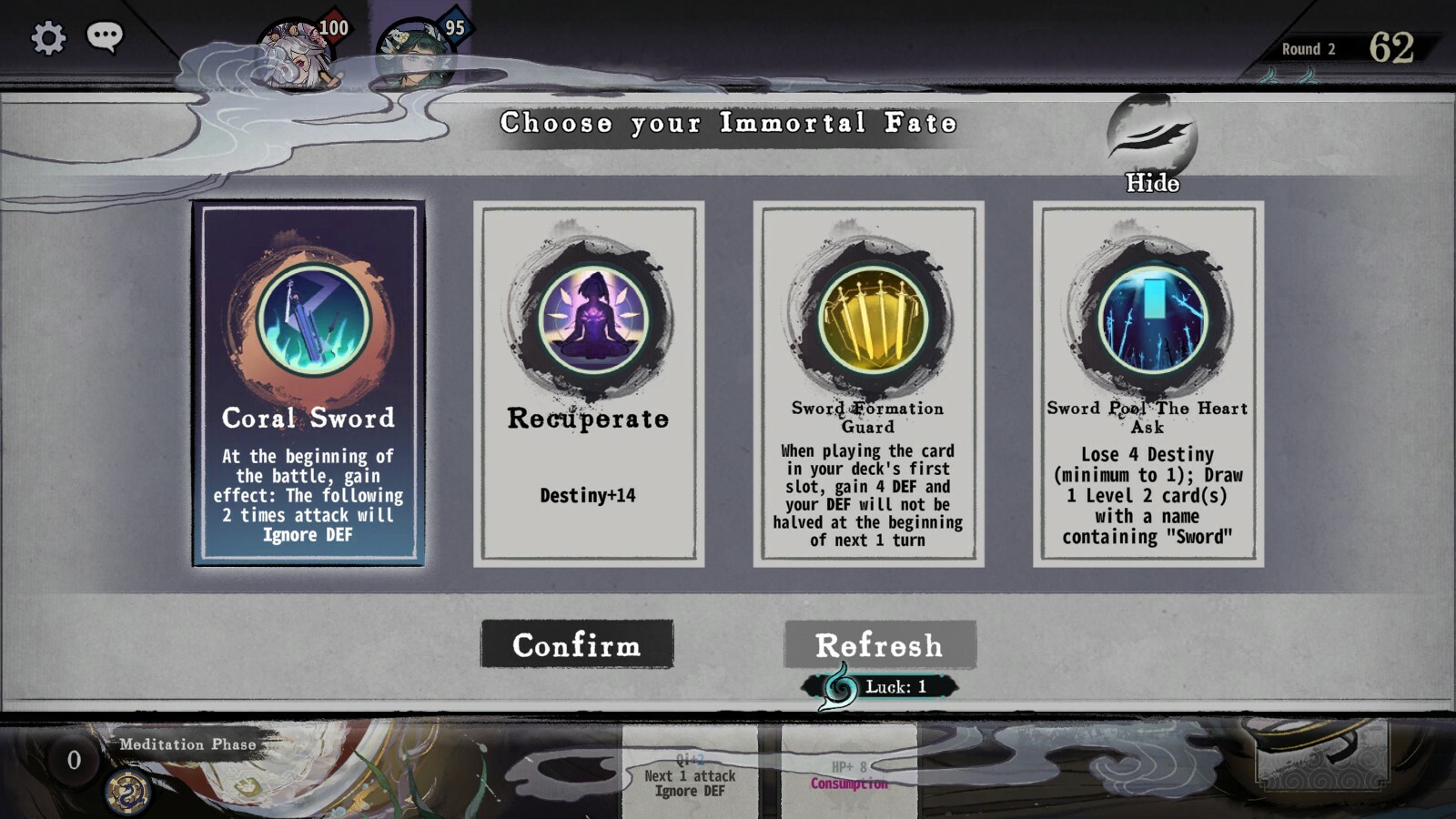 - When selecting Immortal Fates, you can spend 1 Luck to refresh the options (doubling the chance of getting a Legendary Immortal Fate).