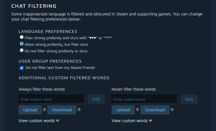 The filter also obeys your Steam preferences for chat filtering as seen here: