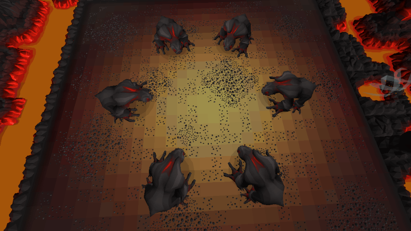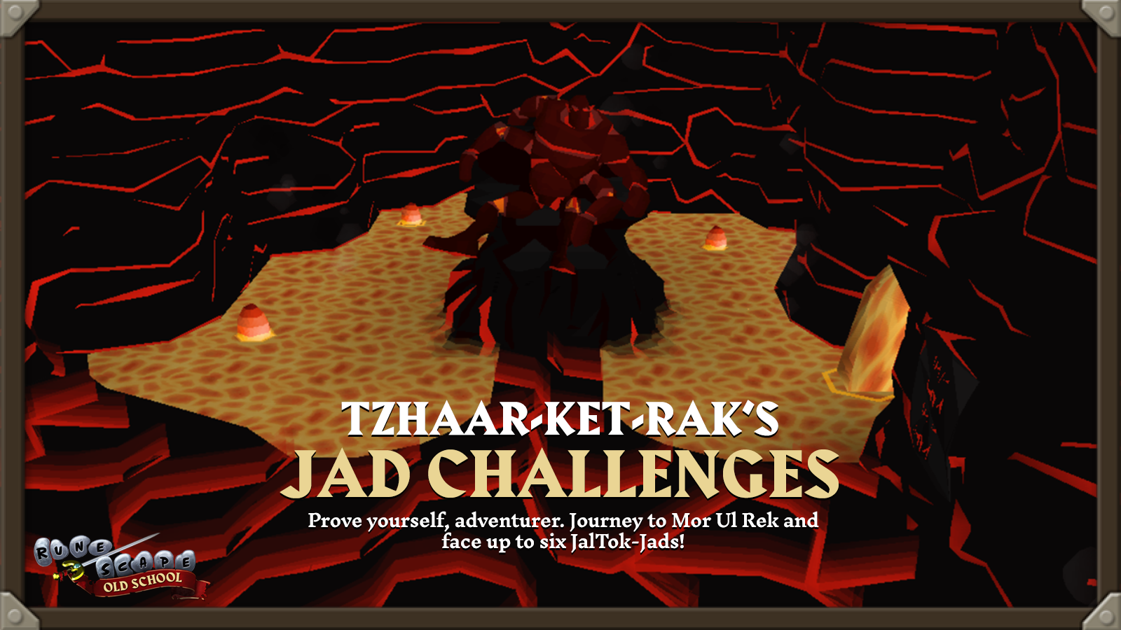 For each challenge, the player must face a steadily increasing number of JalTok-Jads, a stronger version of the iconic TzTok-Jad. For the first challenge you'll only face one, which then unlocks the next level - until finally you must defeat six of 'em! Each challenge is on the clock and a nearby scoreboard will show your best times. In order to unlock challenges 3-6, players must have completed the Inferno.