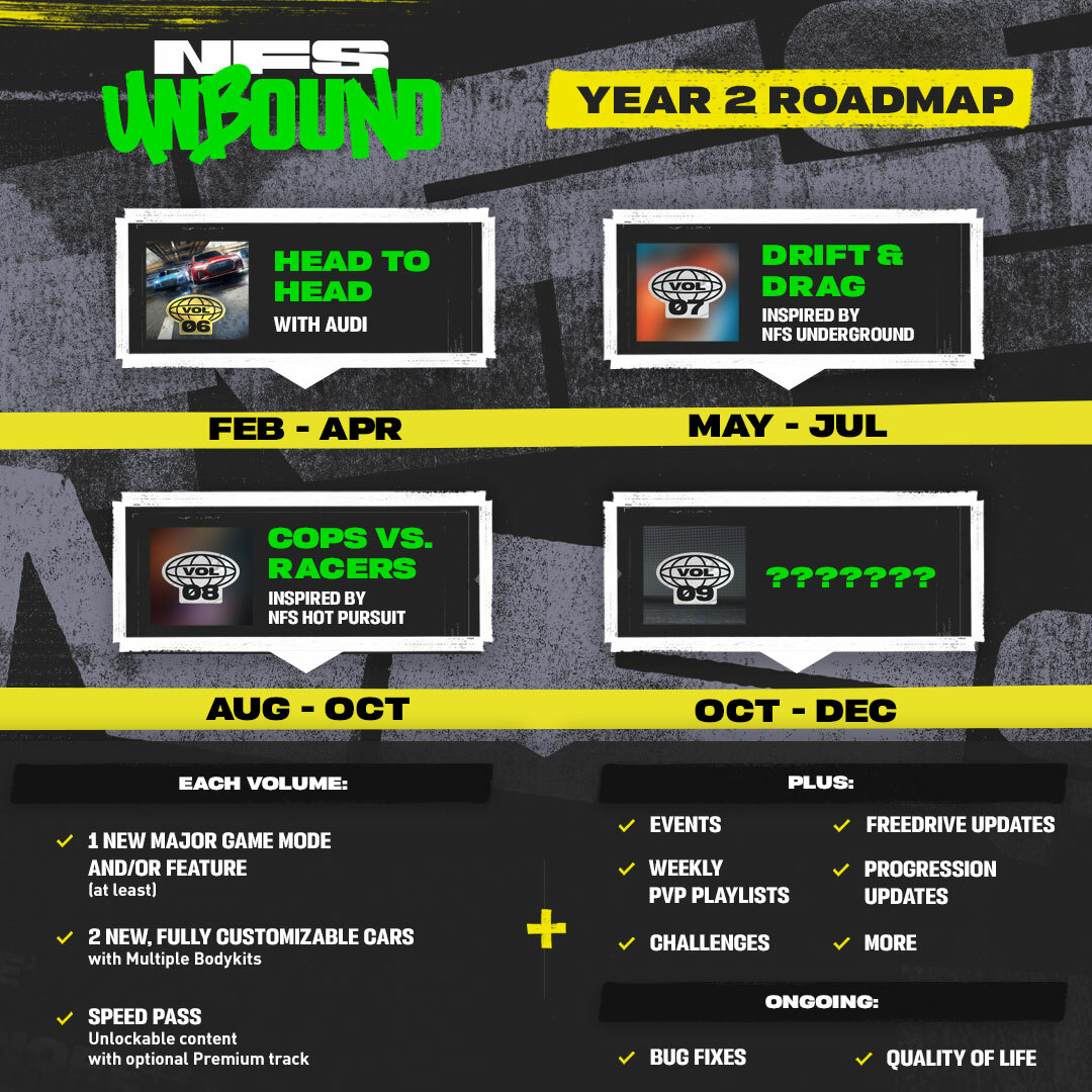 We’re committing to adding four new volumes of content in the next year, each launching every few months. We aim to deliver some exciting themed updates, with at least one new major mode added to each volume. We will also continue to build on and evolve with each time. Adding more events, more challenges, new content, Ranks to earn, and new progression to chase. We will deliver at least two new fully customizable cars as part of the Speed Pass. And when we say cars, we mean cars in the NFS sense, like no one else creates. We aren’t just talking base models here and stock paint there; we are talking cars that come with fully customizable body kits with a myriad of interchangeable parts so you can tweak your ride just the way you want it.Most Requested Bug Fixes and Improvements