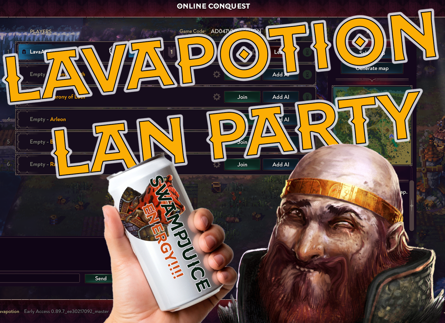We’ll start streaming this midday fun at 12 pm Central Euro Time, Saturday the 25th and we’ll keep at it most afternoon, drinking energy drinks and eating unhealthy things at Lavapotion HQ, just like tradition demands!