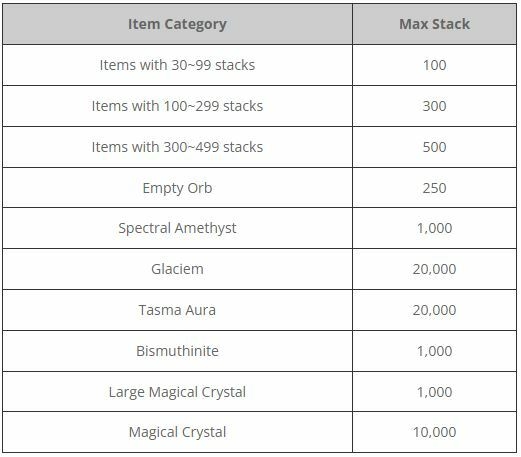 - Stack Items (Glaciem Ore, Tasma Aura Mass etc) have changed to allow opening multiple at once.