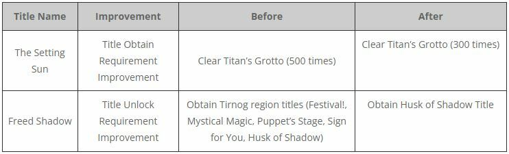- Title: The Setting Sun obtain requirement and Title: Freed Shadow unlock requirement has improved.