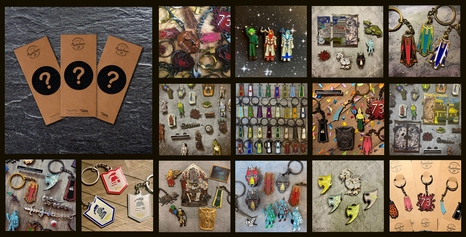 Luckily, the Merch Store has the solution in the form of Angels Scapes Mystery Bags! Each pin bag will contain either three individual pins, a complete three or four pin set, or a very special large commemorative pin. What’s more, each bag is guaranteed to contain at least one limited edition pin, including items from the Christmas and Anniversary event collections, the Baroo collabs with star artist Prezleek, the Cities of Gielinor collection, and more! Maybe you’ll even take home your very own Tim and Crunchy?