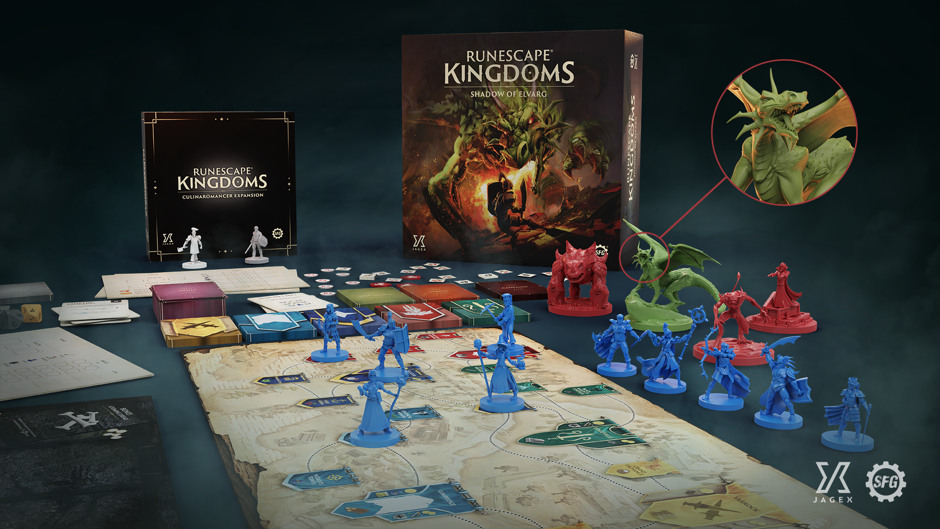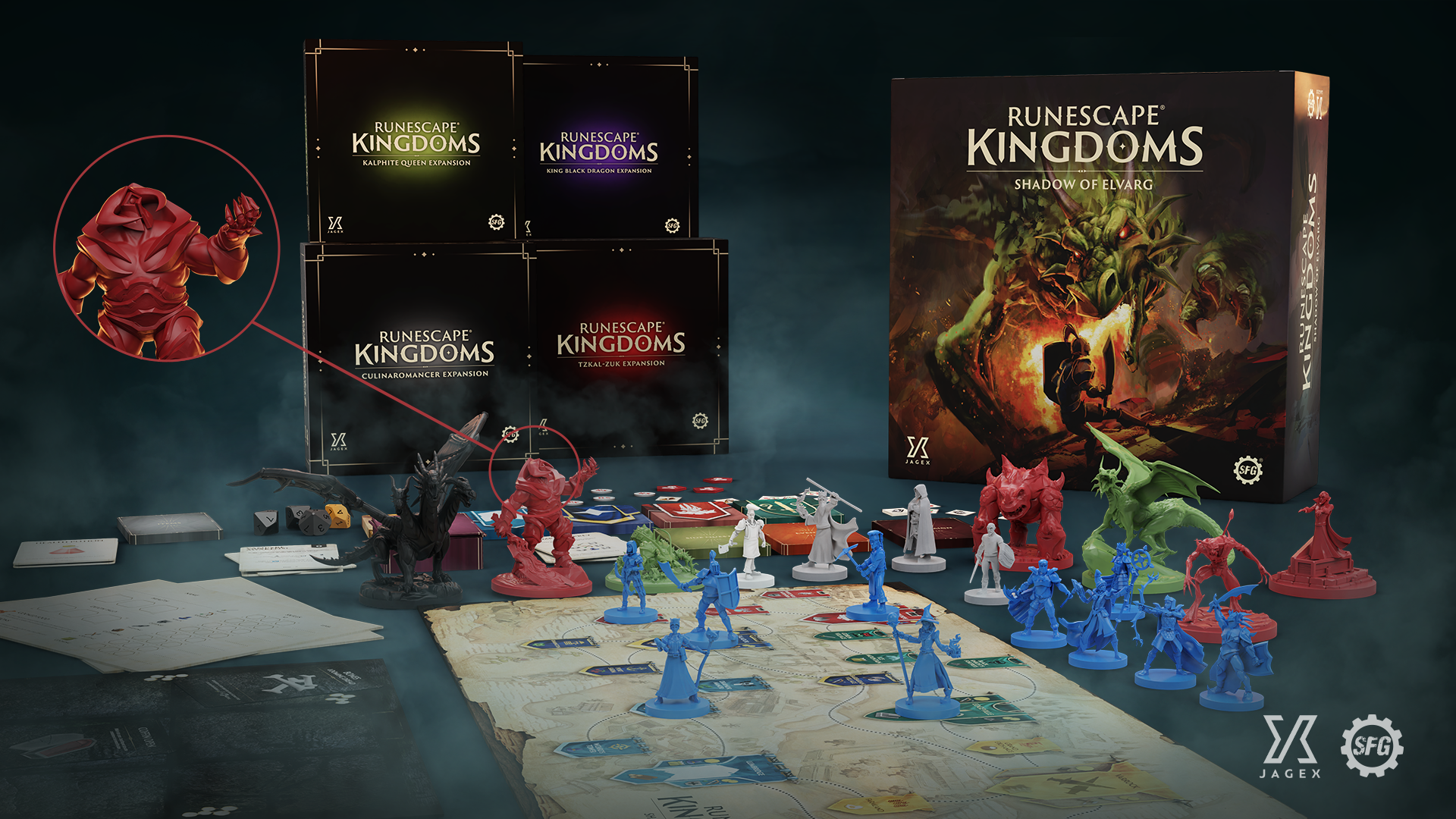 box and all four expansions, each themed around a unique boss. It’s a replayable 24-hour fantasy adventure packed into one great-value pledge – and you’ll get all the Kickstarter-exclusive content, too!Yes, that includes the sneak-peek King Black Dragon and TzKal-Zuk minis in the image above, plus additional minis including the Wise Old Man and other iconic NPCs.