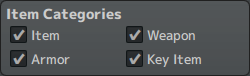 Now you can turn off specific Item Categories in your game. Don’t have Armor? Don’t have it in the Menu!