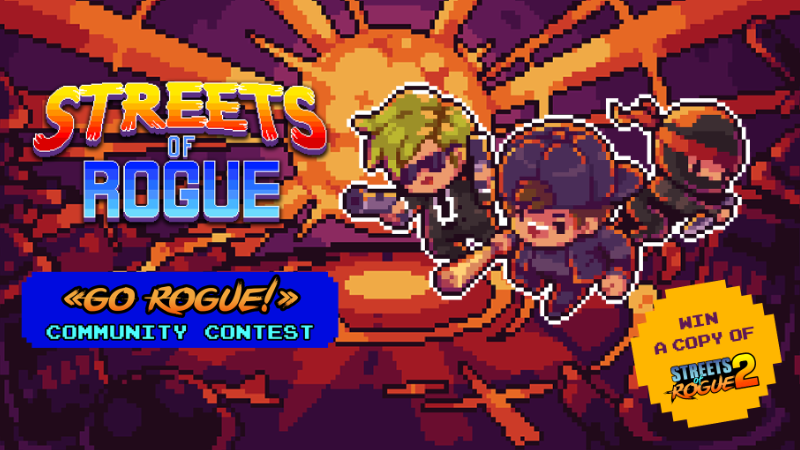 Multiple submissionsfrom one contestantare allowed: let your imagination go wild! The only limitation isone idea per category. So yeah, "wild" is ok, but not TOO too wild! :) Share your ideas with me in the comments under this announcement. You can also go to ourDiscord serverand leave your idea(s) in a dedicated forum channel. Suggestions from each participant should be contained in one post (but multiple are OK if you run out of space). You can edit your submission to add more ideas at any time before the end of the contest; Each idea should be contained in a paragraph max.I'd allow more, but I do plan to read all of these, and well... time is a thing that exists :) Preferred language: English, but other languages are welcome; Accompany your idea(s) with visual assets if you want.Just upload an image or GIF to Imgur or any other image hosting service and add the link in your comment. Rough drafts are okay; Feel free to re-submit your own ideas that you've posted previously.If you've already posted an idea that you really loved here on the forums, on the SoR Discord, SoR subreddit, or socials, you can post it again; For more info on Streets of Rogue 2's design, be sure to check out the Steam Store Page and FAQ; The contest concludes on August 2nd, at 6:00 pm CET / 9:00 am PT / 12 am ET. As soon as it ends, I will select my favorite community idea(s) based on creativity, uniqueness, and how the idea suits my vision of the game; I will implement the winning ideas in. When? I can't say for sure, but likely at some point during the game's Early Access phase, or maybe prior to it if I have time;Streets of Rogue 2- Now, the prize. The winner(s) of the “Go Rogue!” contest will get