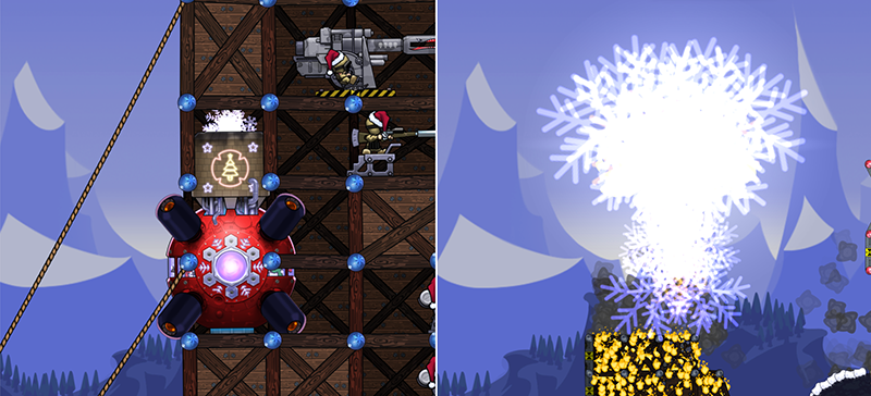 The holidays theme is now live! Along with features from previous years such as the themed front end, holiday jingle and baubles, decorations for tech buildings and snowball ammunition; we've also dressed the reactor. Land a critical hit on that over-sized bauble and enjoy the snowflake cloud and enchanting sounds effects!