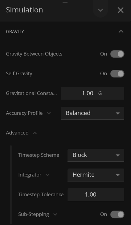 We've also added more controls so you can fine-tune the balance between maximum simulation speed and gravitational accuracy. Learn more in our updated guide