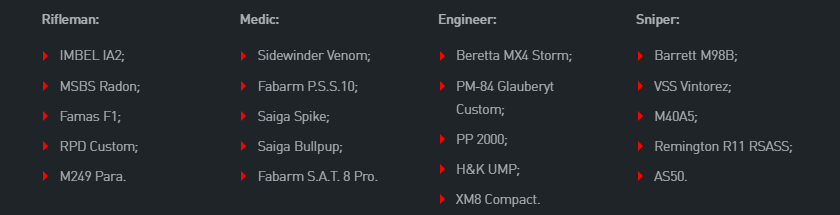 - Howa Type 89 Custom: fixed an error due to which the location of the Vism Flip Dot GSS reflex sight did not match the one shown on the stripe given for kills made with this weapon.